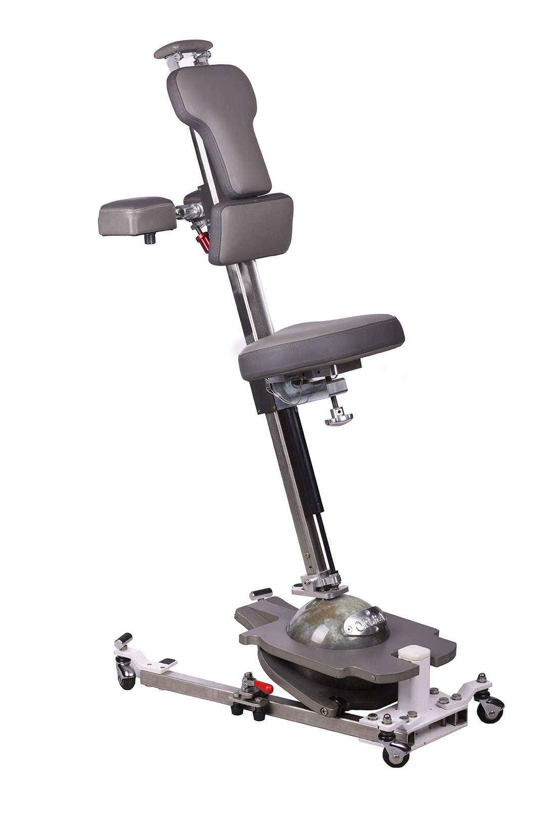 The seat incorporates a unique slide and tilt system. Tilt position can be adjusted to achieve an optimal (posture perfect) curvature of the spine using the large micro adjustable knob at the back.