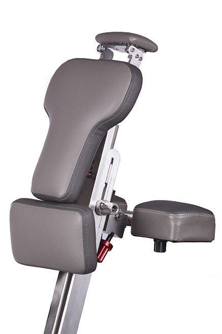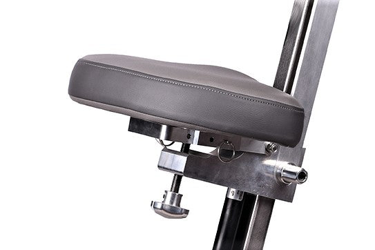 This neutral spine position relieves the tension of the back muscles allowing the neck and shoulder muscles to also relax. Seat slide (set-back) is adjusted using the two pins on the seat track assembly.