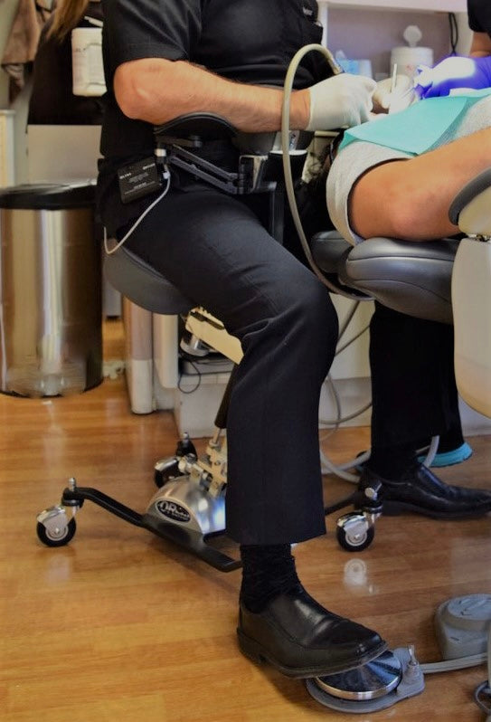 The Orbital Chairs are ergonomic dental chairs / stools designed to help dental professionals maintain correct working posture, in a forward leaning environment. Dental practitioners needlessly sacrifice their body health on a daily basis. The Orbital Chair is a leading edge solution to this widespread problem. These ergonomic support systems are designed to keep dental professionals ergonomically healthier, thereby increasing productivity, working lifespan and improving overall body health throughout their career and into retirement.